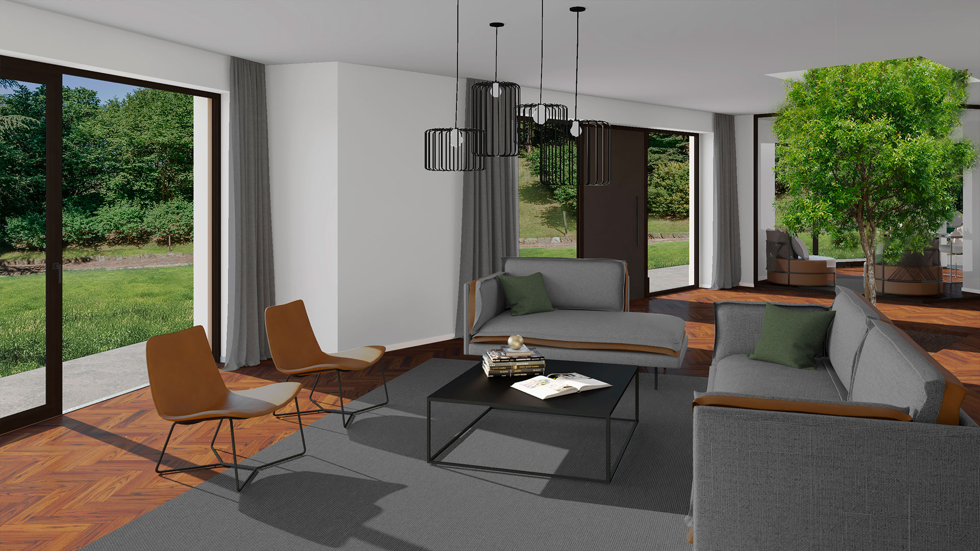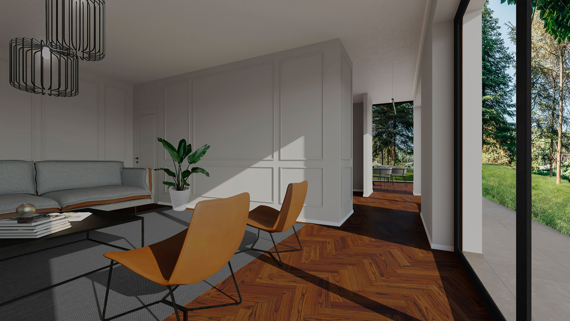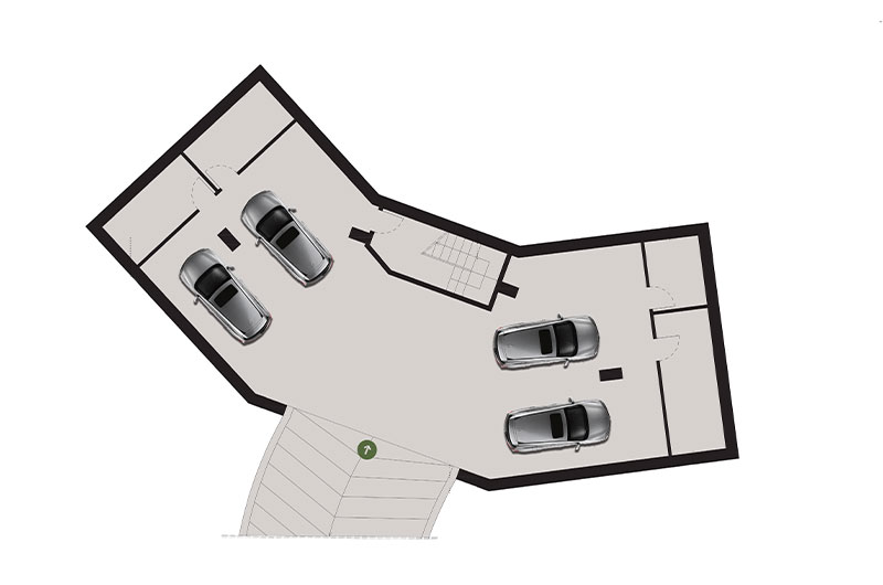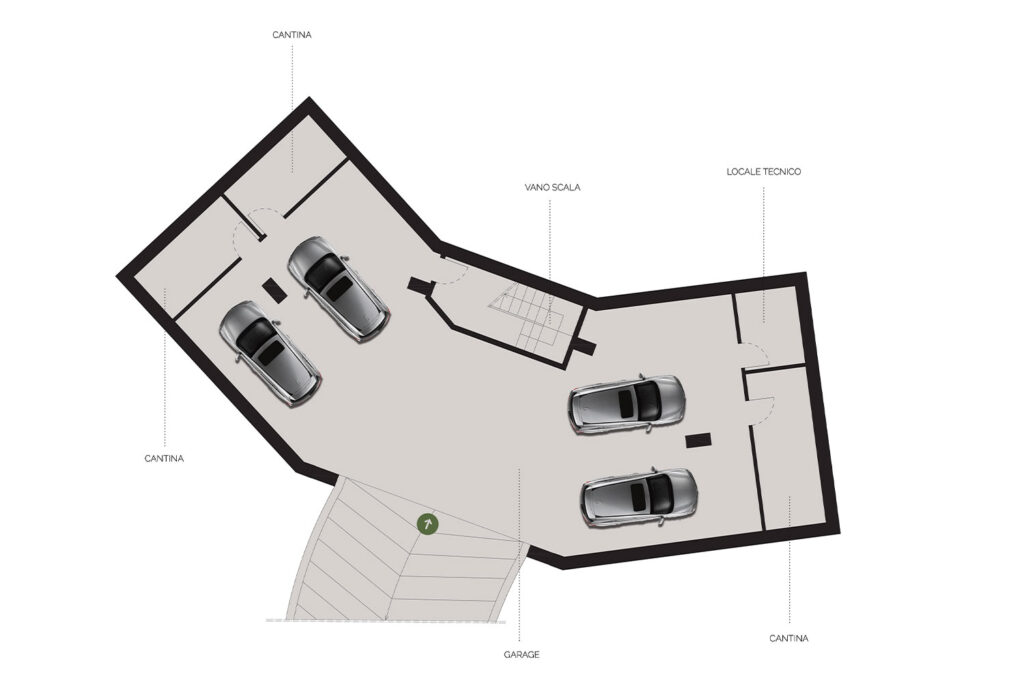 Al piano interrato, che ha accesso diretto all’abitazione, è presente un’ampia zona parking con quattro posti auto e ambienti che possono essere destinati a diversi usi. Vi sono inoltre due cantine e un locale tecnico, oltre a postazioni per la ricarica di auto elettriche.